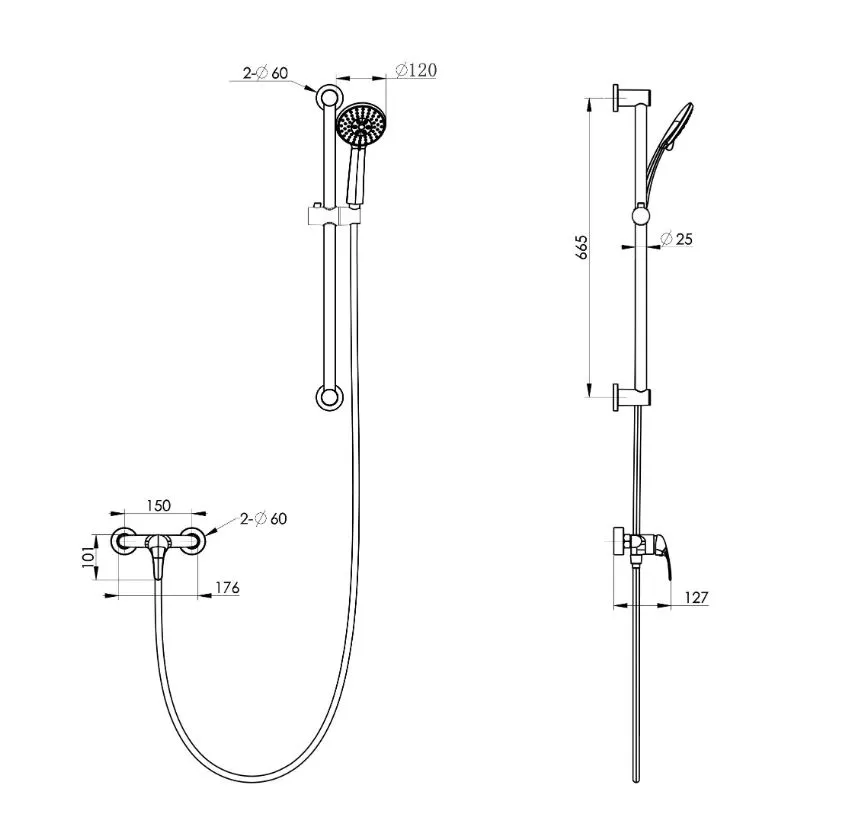 - Душевой шланг с защитой от перекручивания: 150 см.