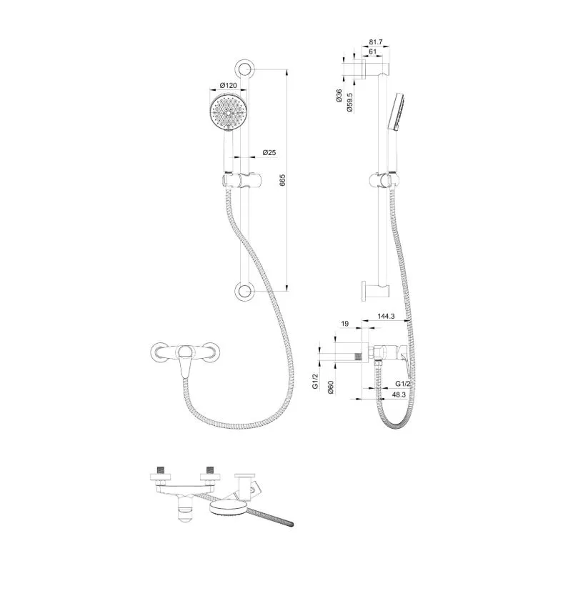 - Душевой шланг с защитой от перекручивания: 150 см.