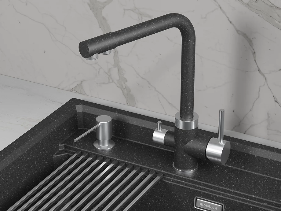 Смеситель для кухни 5015, ЧЁРНЫЙ с подключением к фильтру, черный