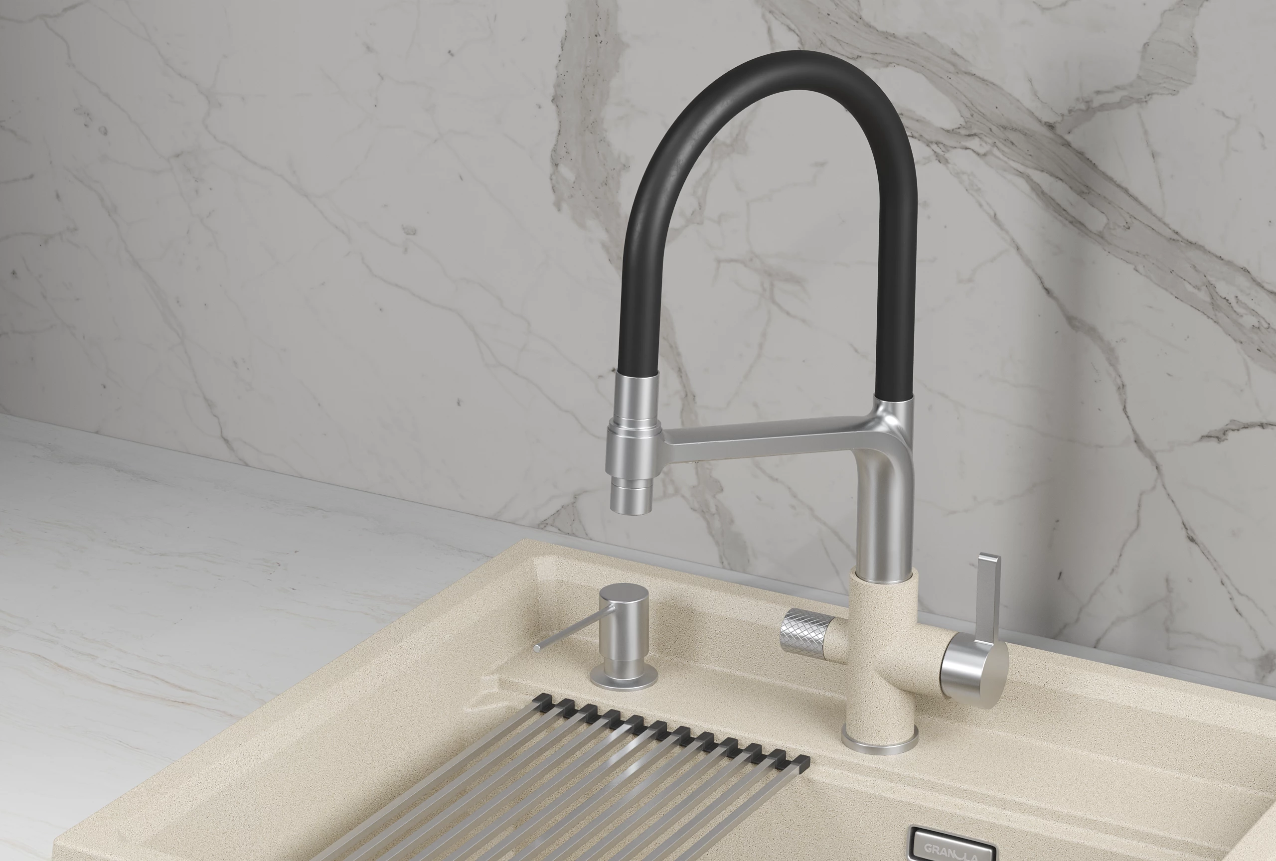 Преобразите свою кухню с помощью этого элегантного смесителя из нержавеющей стали! Он не только станет стильным акцентом в интерьере, но и обеспечит Вас чистой питьевой водой благодаря встроенному подключению к фильтру. Прочная нержавеющая сталь гарантирует долговечность и простоту в уходе, а удобное управление позволит легко настроить температуру и напор.
