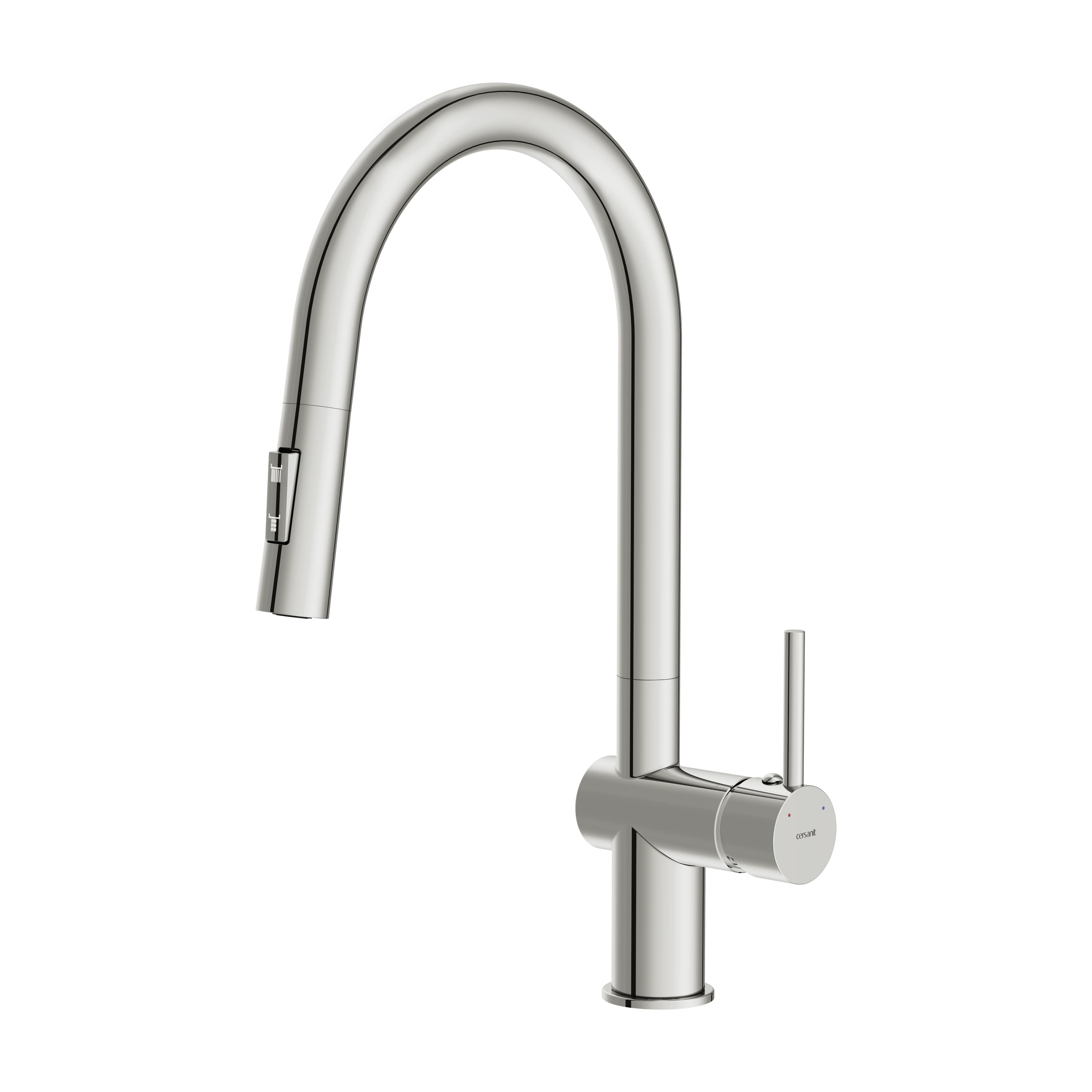 Изящный дизайн смесителей Brasko с округлыми линиями привнесет в интерьер размеренности и гармонии. Модель с выдвижной лейкой с двумя режимами функциональна и практична.Стильное оборудование с актуальным никель-хромовым покрытием Cersanit Super Shine красиво благодаря своему стойкому блеску и глубокой зеркальной поверхности. Высокие эксплуатационные характеристики доказаны многочасовыми тестами в агрессивной среде. Для изготовления смесителя используется латунь — безопасный и долговечный материал. Сплав не выделяет вредных веществ в воду, что особенно важно при использовании для питьевой воды или приготовления пищи. В составе латуни преобладает медь, которая защищает смеситель изнутри от коррозии и трещин. Именно это свойство обеспечивает долгий срок службы и защиту от протечек. Внутри смесителя установлен картридж, обеспечивающий более 500 циклов открытия и закрытия. На этот элемент, изготовленный из надёжных материалов, действует гарантия производителя 5 лет. Вне зависимости от условий использования и жёсткости воды, оборудование будет работать бесперебойно годами. Излив смесителя поворотный — его можно вращать на 360 градусов и направлять струю воды именно туда, куда нужно. Смеситель оснащен аэратором Neoperl, который обеспечивает стабильно ровный поток воды даже при плохом напоре. Он позволяет экономить до 50% воды по сравнению с обычными смесителями. Выдвижная лейка позволяет решать целый спектр задач, от мытья раковины, посуды и овощей до заполнения водой ёмкостей, которые не помещаются в раковину. Чтобы воспользоваться ею, достаточно просто потянуть душ на себя. Длина шланга регулируется, а сам душ можно поворачивать в любую сторону.