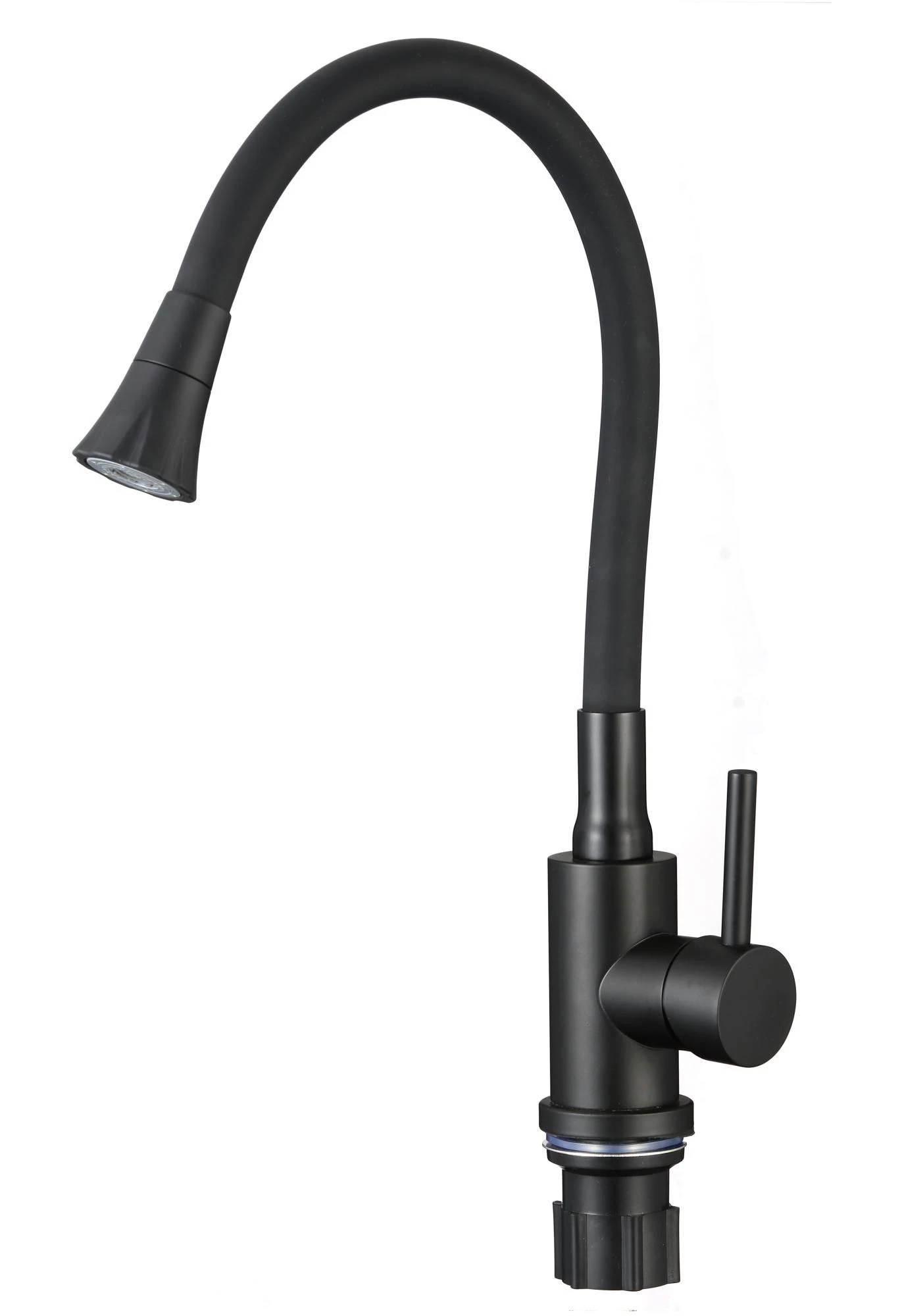 Fmark FS8299H-01 — стильный кухонный смеситель с полностью чёрным матовым исполнением, гибким силиконовым изливом и лейкой-аэратором с двумя режимами. Модель сочетает удобство эксплуатации, современный минималистичный дизайн и надёжные материалы, обеспечивая комфортную работу у мойки каждый день.