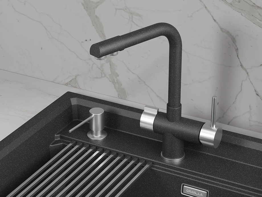 Смеситель для кухни Granula 5008, ЧЁРНЫЙ с подключением к фильтру, черный