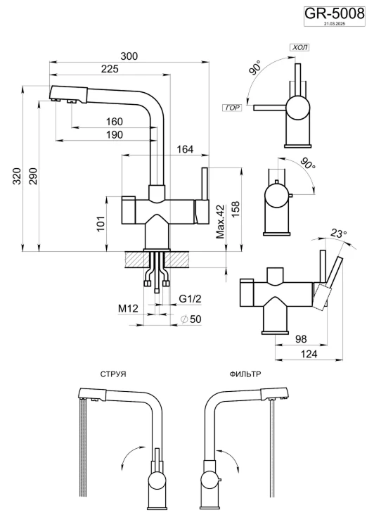 Смеситель для кухни Granula 5008, ТУРМАЛИН с подключением к фильтру, черный