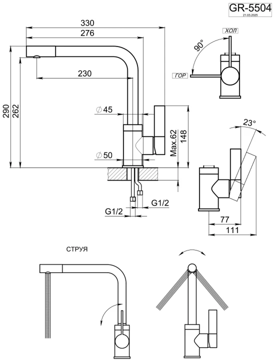 Смеситель для кухни Granula 5504, ШВАРЦ черный