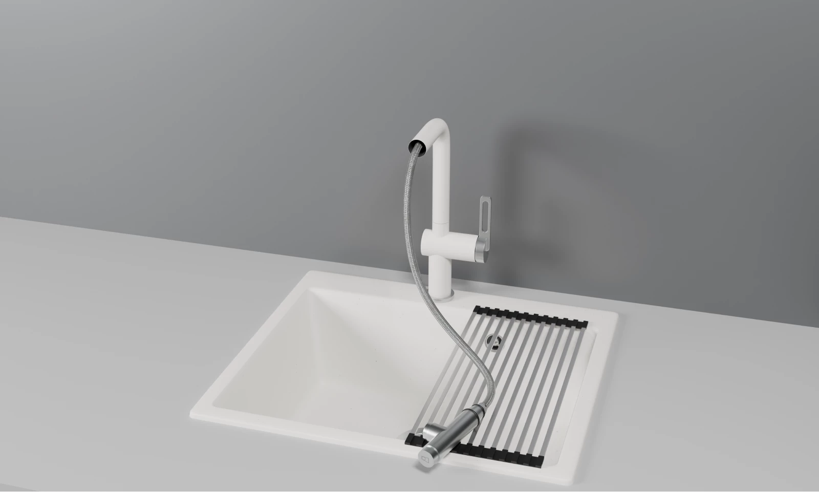 Смеситель для кухни Granula 8169, АРКТИК БЕЛЫЙ с выдвижным изливом и подключением к фильтру, белый