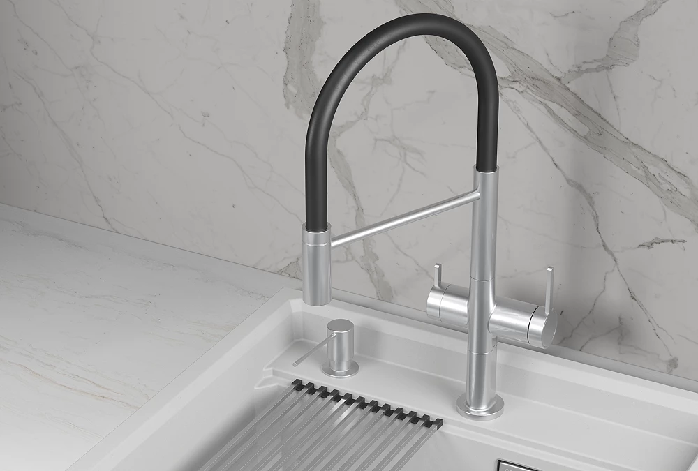 Стильный смеситель из нержавеющей стали с подключением к фильтру для питьевой воды — идеальное решение для Вашей кухни. Он не только добавит элегантности Вашему интерьеру, но и обеспечит доступ к чистой и безопасной питьевой воде. Изготовленный из высококачественной нержавеющей стали, он устойчив к коррозии и легко очищается. Удобный механизм управления позволяет точно регулировать температуру и напор воды. Подключение к фильтру гарантирует, что Вы всегда будете иметь под рукой свежую и вкусную воду. Обновите свою кухню с этим функциональным и эстетичным смесителем!