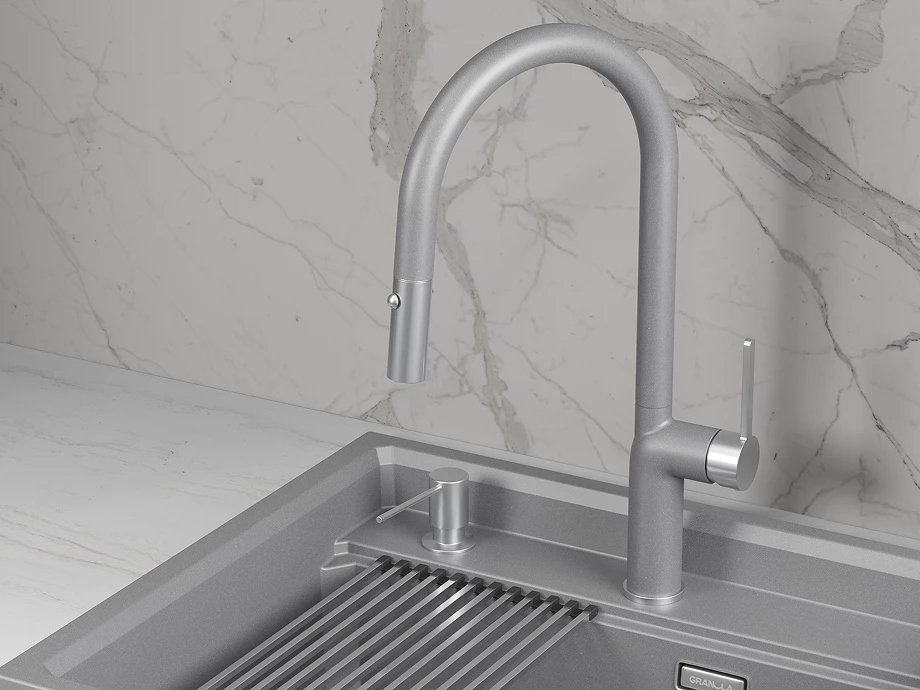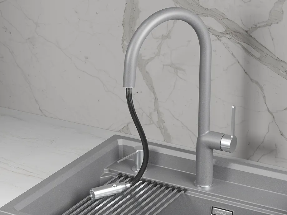 Смеситель для кухни Granula 9010, АЛЮМИНИУМ выдвижной излив, серый