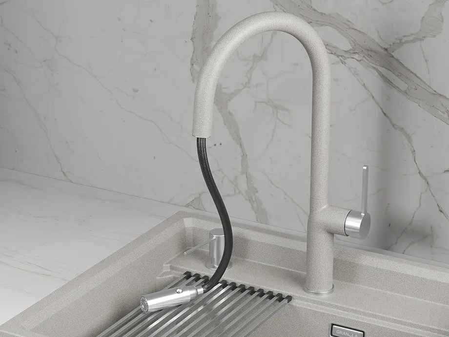Смеситель для кухни Granula 9010, БАЗАЛЬТ выдвижной излив, бежевый