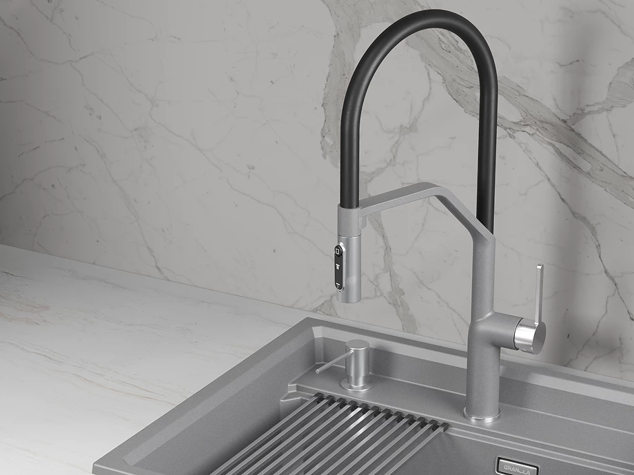 Представляем кухонный смеситель GR-9012 – стильное и функциональное решение для Вашей кухни. Этот смеситель сочетает в себе современный дизайн и передовые технологии, обеспечивая удобство и долговечность.