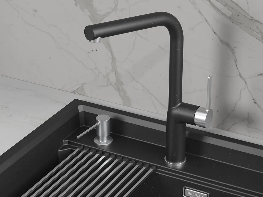 Представляем вашему вниманию кухонный смеситель модели GR-9502 из серии Granula. Этот стильный и функциональный смеситель выполнен из высококачественной нержавеющей стали, что обеспечивает долговечность и устойчивость к коррозии.