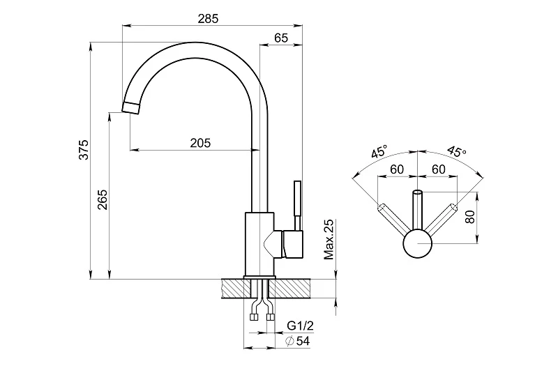 Смеситель для кухни GRANULA ST-4031, ШВАРЦ