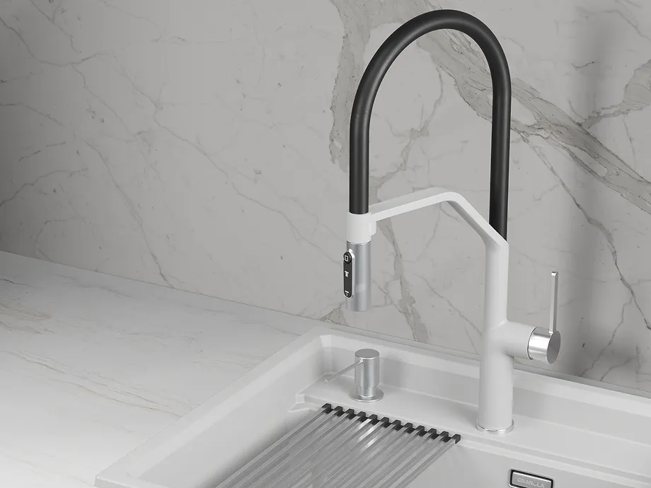Представляем кухонный смеситель GR-9012 – стильное и функциональное решение для Вашей кухни. Этот смеситель сочетает в себе современный дизайн и передовые технологии, обеспечивая удобство и долговечность.