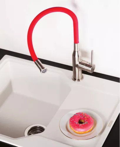 • Уникальная конструкция смесителя предусматривает возможность легкой замены цветных шлангов на один из трех вариаций: белый, красный и черный;