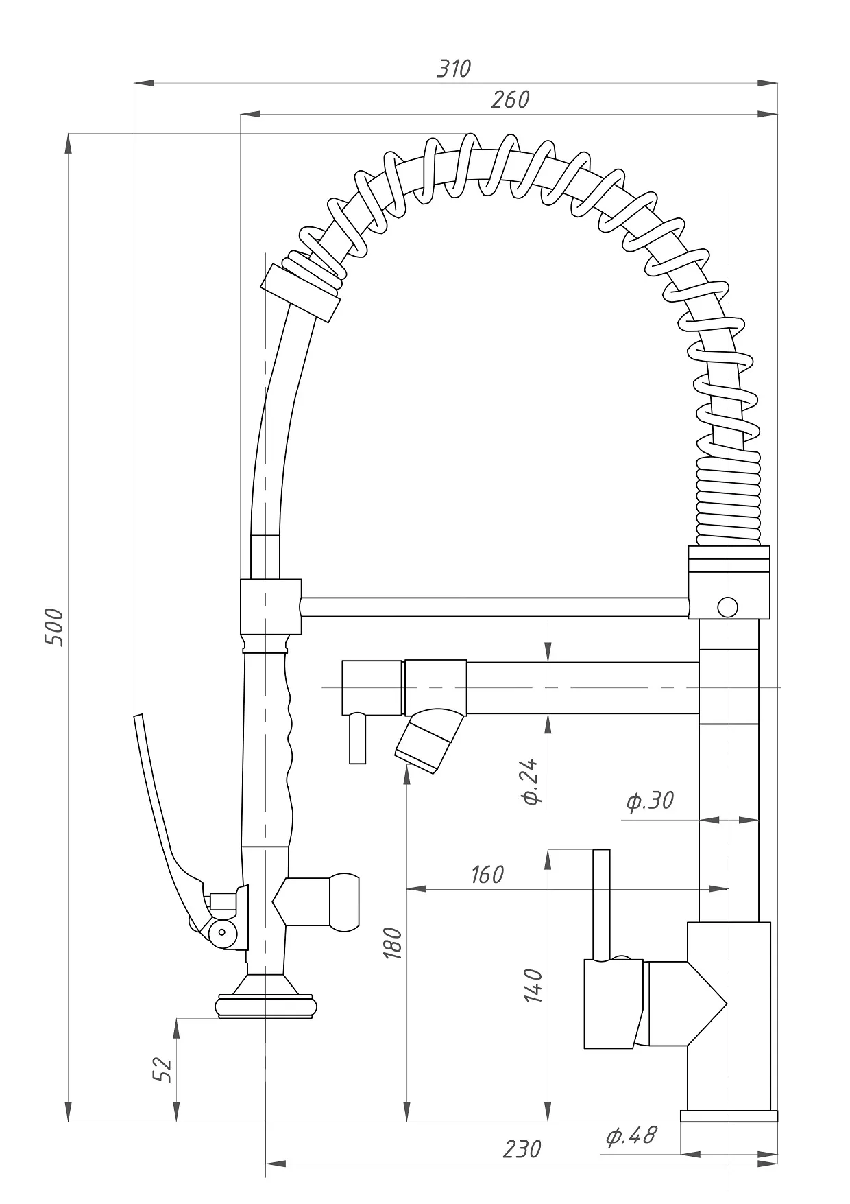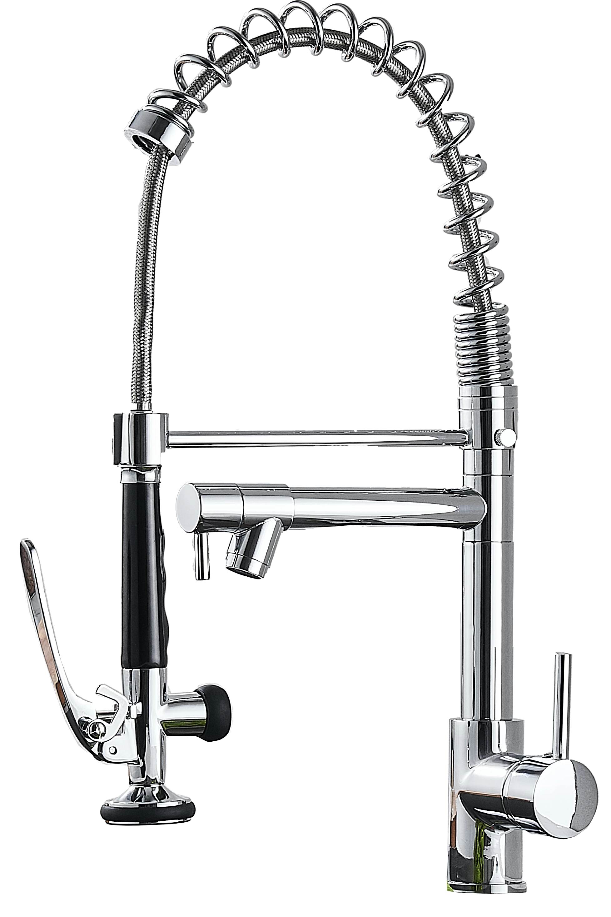Профессиональный смеситель для кухни с душирующим устройством PSM-104-39 предназначен для интенсивного использования на кухнях общепита: кафе, столовых, ресторанах и любых пищеблоках. Корпус выполнен из латуни. Металлическая лейка с защитным упором имеют резиновое покрытие. Лейкас рычагом включения подачи воды и фиксатором для длительной работы. Отдельный поворотный излив с керамическим дивертором для переключения потоков воды между лейкой и изливом расширяет вариативность и удобство эксплуатации смесителя.