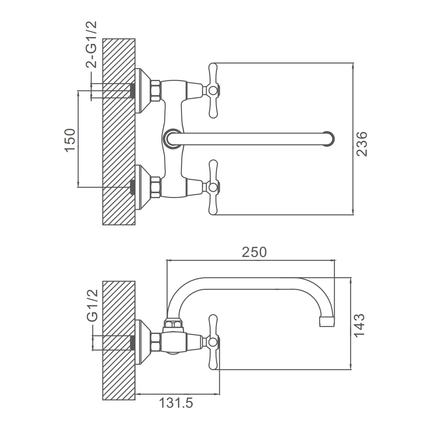 Смеситель для кухни Prohanss P10 P10.47 настенный, хром