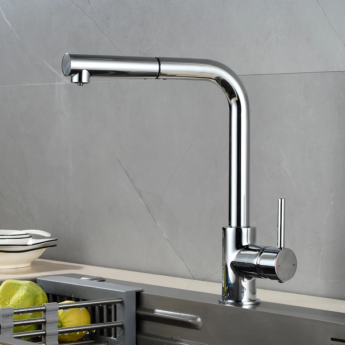 Выдвижной излив дает возможность направлять поток воды в разные углы кухонной мойки.