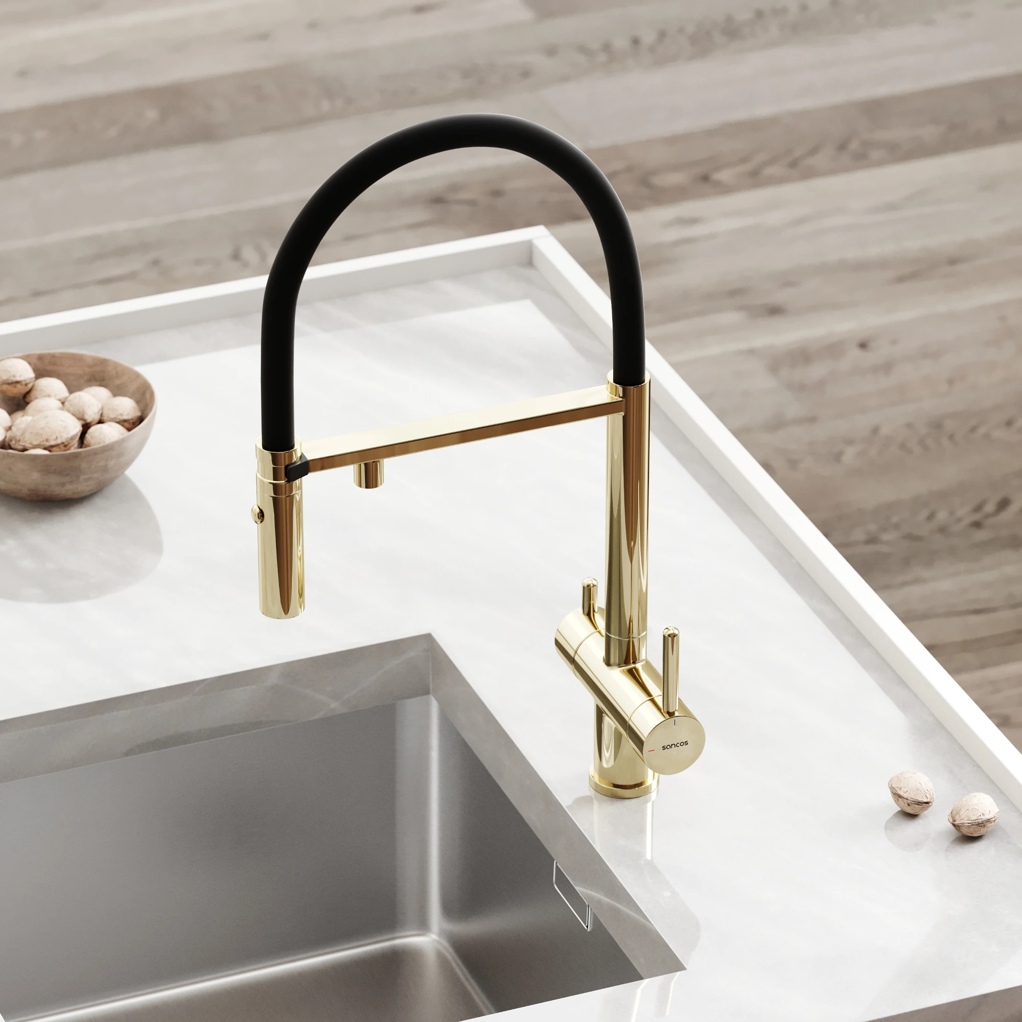 Смеситель для кухни Sancos Imola SC4010ZG с функцией подключения фильтра, золото/чёрный