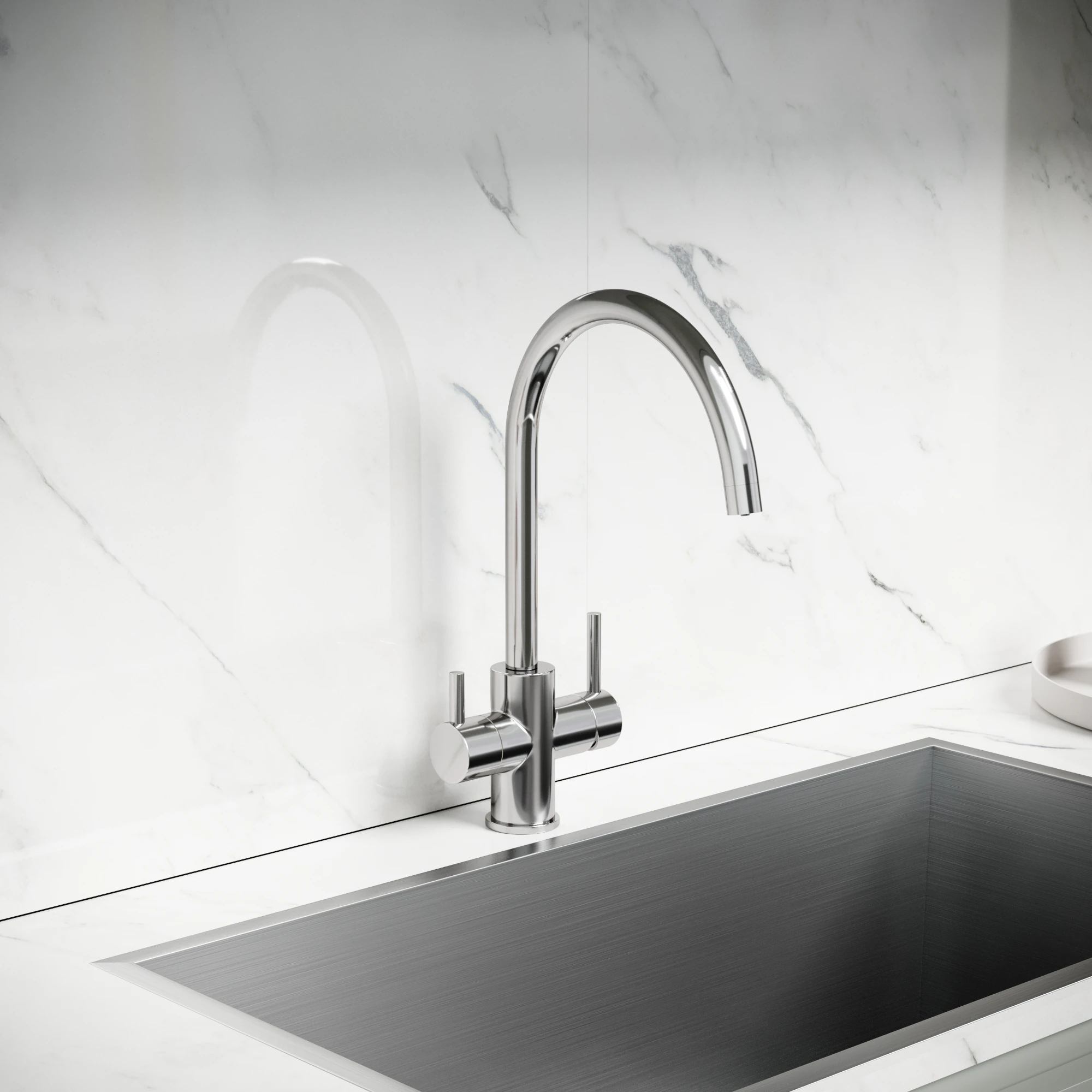 В комплекте: смеситель, комплект для подключения к фильтру, подводка для воды, монтажный комплект.