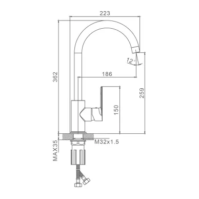 • Стиль: современный • Цвет: графит • Материал корпуса: латунь • Форма: круглая • Монтаж: настольный • Кол-во отверстий для монтажа: 1 • Тип управления: одноручковый • Излив: гибкий • Стандарт подводки: 1/2