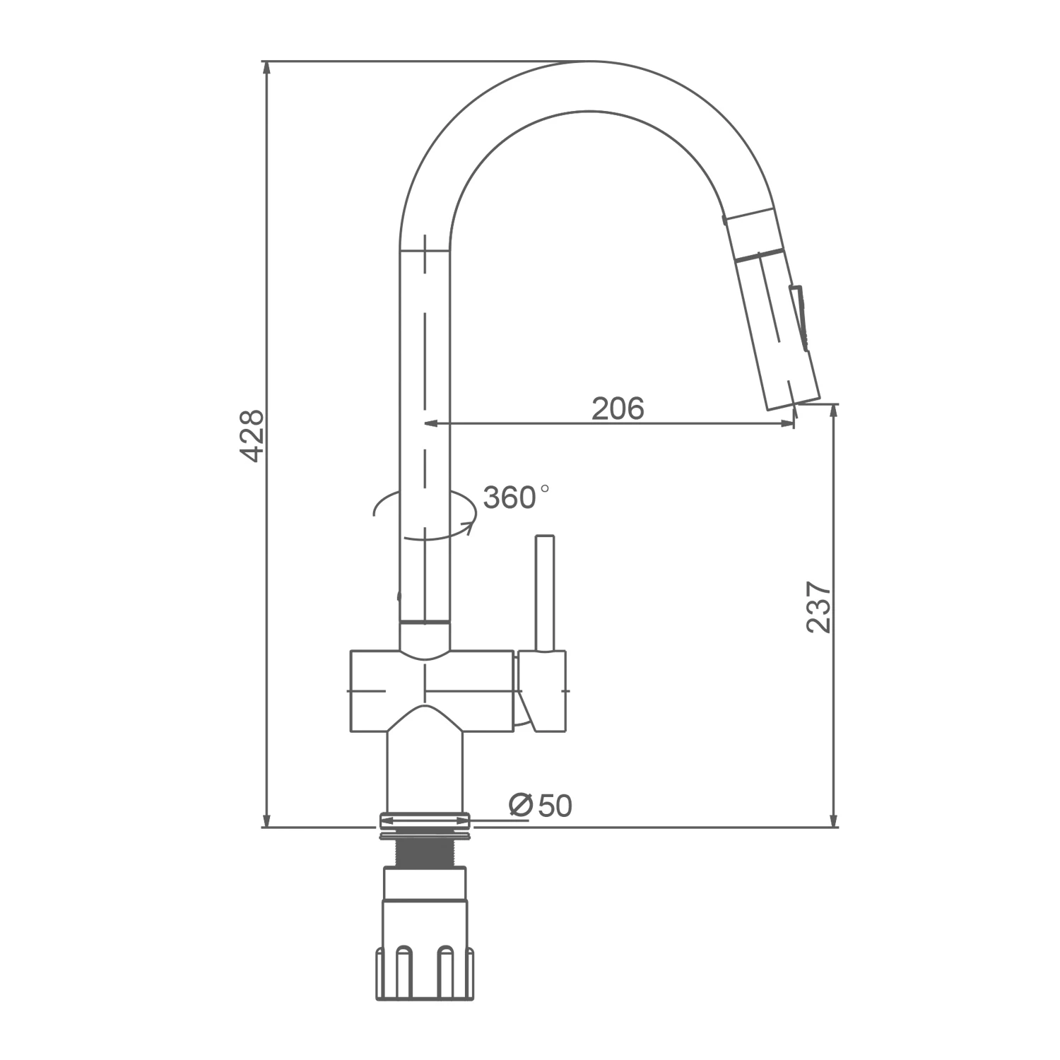 Смеситель для кухни Splenka S204 S204.49.03 2х-режимный поворотный выдвижной излив, сатин золотой