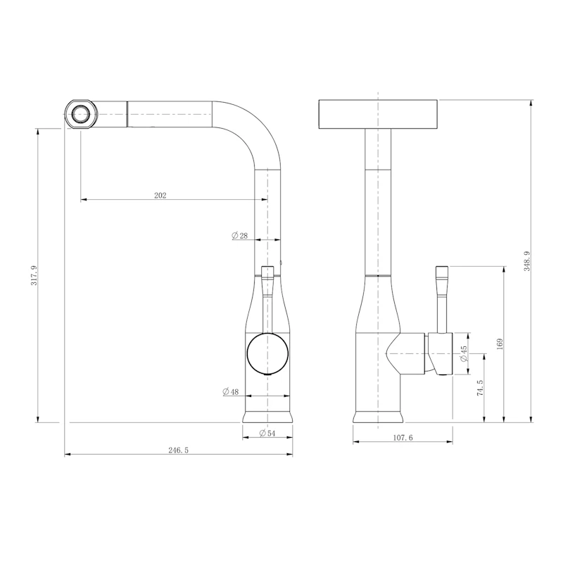 Смеситель для кухни Splenka S206 S206.49.05 мультирежимный поворотный выдвижной излив, сатин