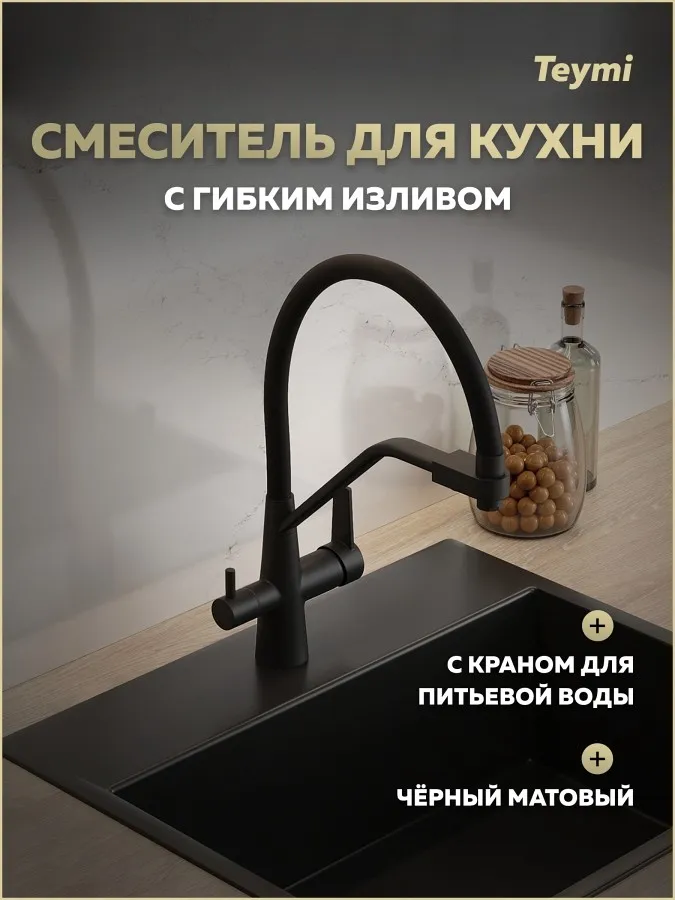 Смеситель для кухни Teymi Solli T10270 чёрный матовый