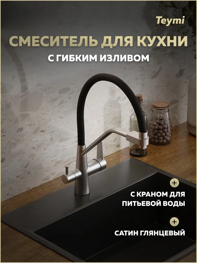Смеситель для кухни Teymi Solli T10272 сатин/чёрный