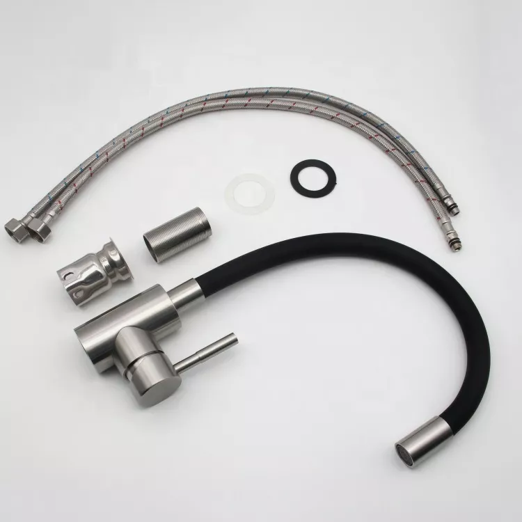 Смеситель для кухни TSARSBERG (Россия) с гибким, армированным, силиконовым изливом, выполнен из нержавеющей стали марки AISI 304. В комплекте со смесителем находится гибкая подводка длинной 50см. и комплект с фиксирующей гайкой и прокладками. Удобный, многофункциональный смеситель с гарантийным сроком 5 лет, станет надёжным и незаменимым помощником на вашей кухне.