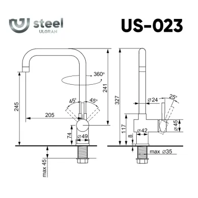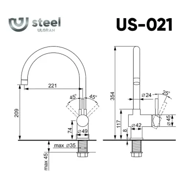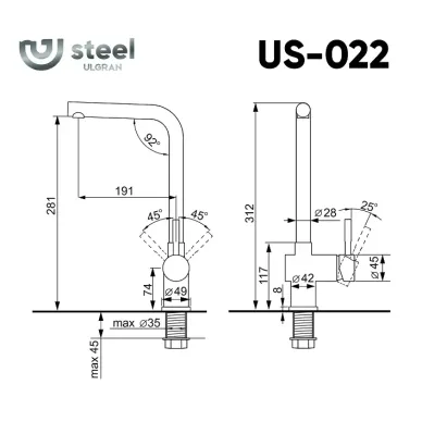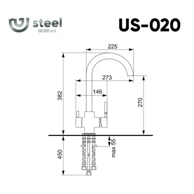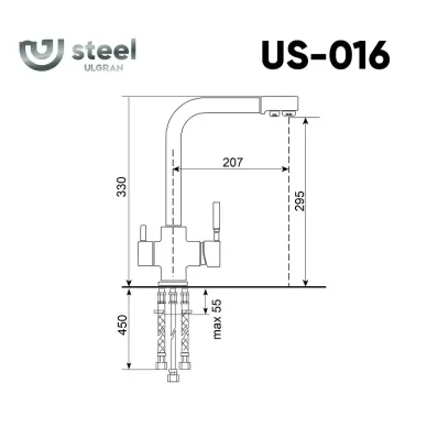 Смеситель для кухни Ulgran Steel US-022-003 вороненая сталь