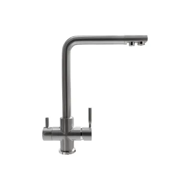 ULGRAN STEEL 022 - однорычажный кухонный смеситель с высоким поворотным изливом. Корпус из высококачественной хирургической стали марки AISI 304 делает смеситель долговечным и устойчивым к коррозии, перепадам давления и температур. Важнейшей особенностью смесителя является то, что цвет идеально совпадает с фирменными цветами моек из нержавеющей стали ULGRAN STEEL и легко подобрать комплект, превратив мойку в настоящий эргономичный центр. В ассортименте имеются цвета "брашированная сталь", "черная брашированная сталь" и "вороненая сталь". В качестве керамического картриджа используется известный бренд Wanhai диаметром 40 мм с высокой пропускной способностью в 500 тысяч циклов "открывания-закрывания". На подвижные части картриджа Wanhai нанесена специальная невымываемая силиконовая смазка, а керамические пластины изготовлены из 96% оксида алюминия, что, в сочетании с высоким качеством шлифовки обеспечивает долговечность, надежность, плавность хода рукоятки. Смеситель оборудован съемным пластиковым аэратором для экономии воды и поворотным изливом на 360 градусов. В комплектацию входят: керамический картридж Wanhai, гибкая подводка 450 мм, комплект крепежных элементов, технический паспорт и гарантийный талон. Заводская гарантия составляет 3 года на материал корпуса, 1 год на комплектующие к смесителю и 1 год на материал покрытия.