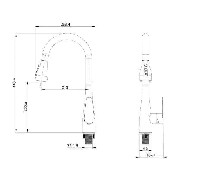 - Смеситель для кухни Wonzon & Woghand WW-121E201B-CR с выдвижным изливом, хром