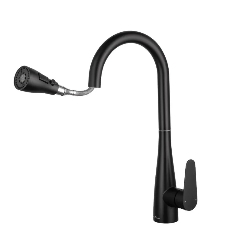 Смеситель для кухни Wonzon & Woghand WW-121E201B-MB с выдвижным изливом, чёрный матовый