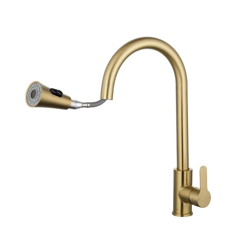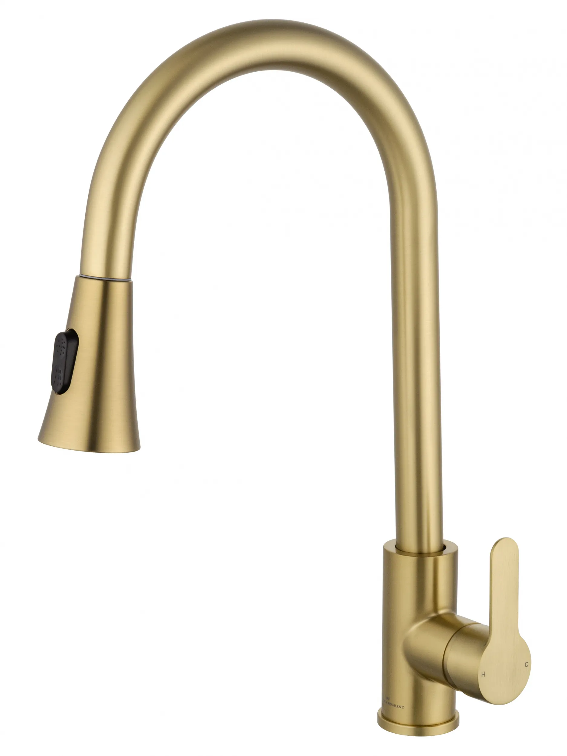 Смеситель для кухни Wonzon & Woghand WW-121E201L-BG с выдвижным изливом, брашированное золото