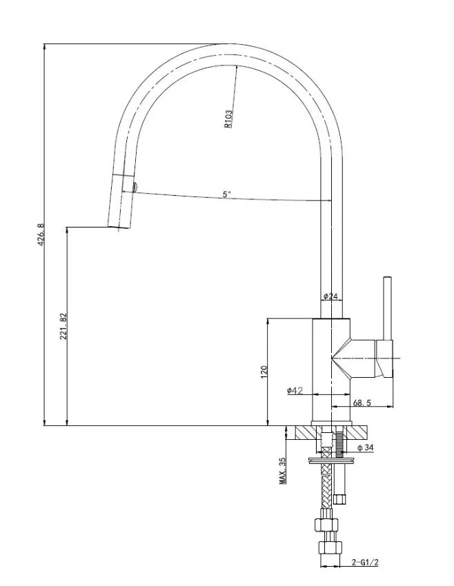 Смеситель для кухни Wonzon & Woghand WW-422902-CR с выдвижным изливом, хром