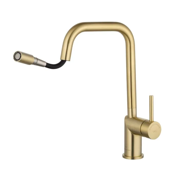 Смеситель для кухни Wonzon & Woghand WW-6018-BG с выдвижным изливом, брашированное золото