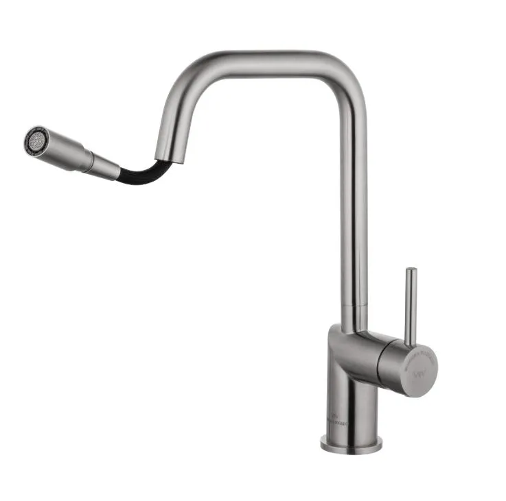 Смеситель для кухни Wonzon & Woghand WW-6018-BS с выдвижным изливом, брашированный никель