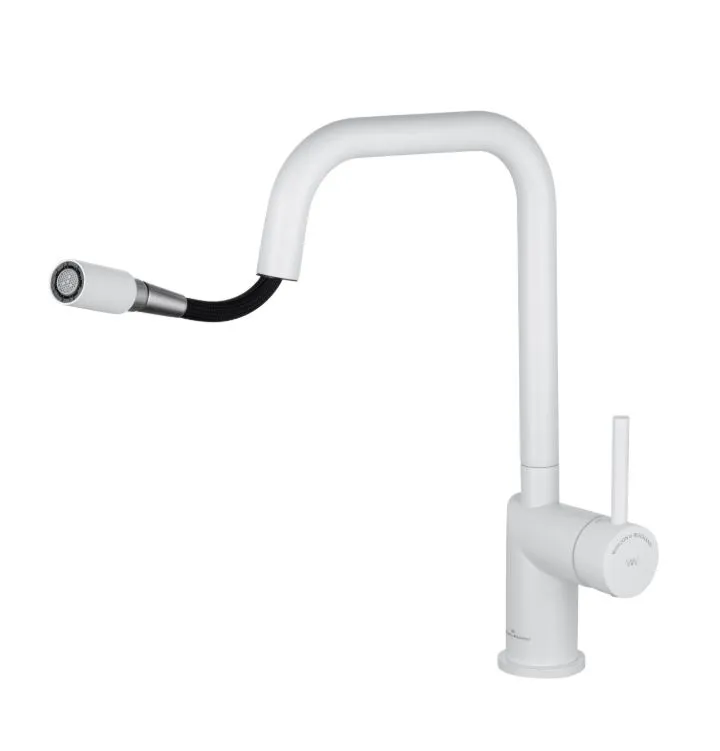 Смеситель для кухни Wonzon & Woghand WW-6018-MW с выдвижным изливом, белый матовый
