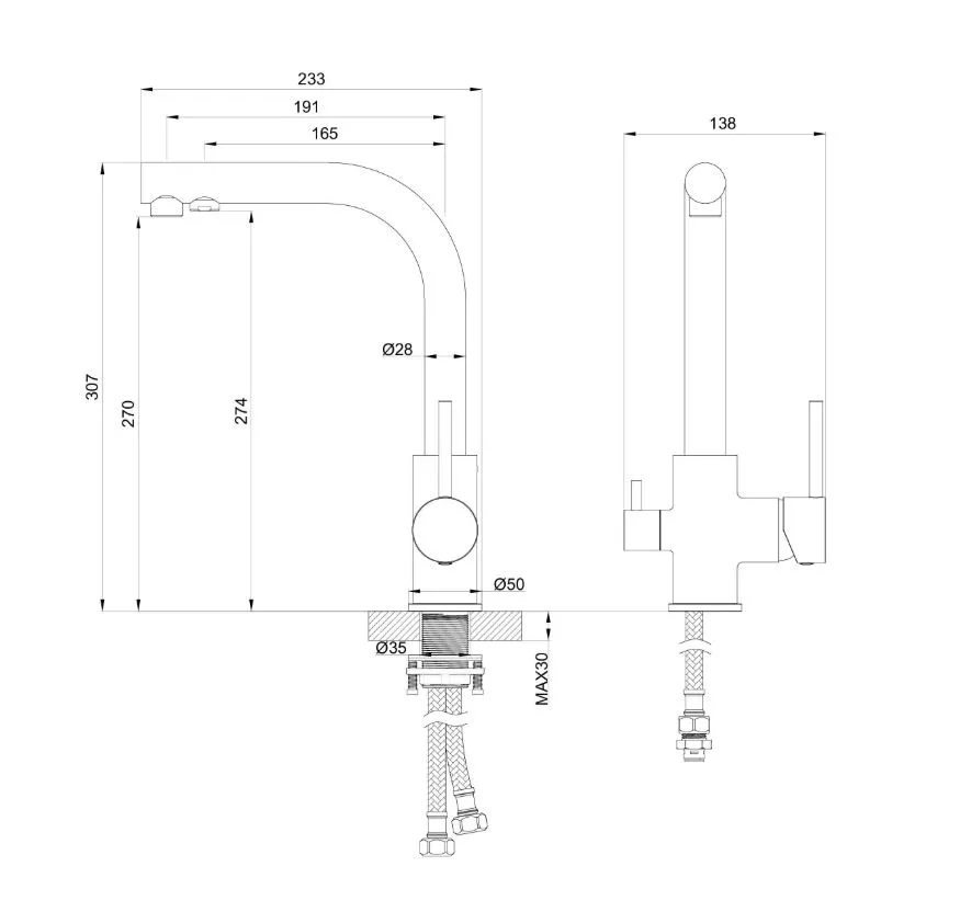 Смеситель для кухни Wonzon & Woghand WW-88458005-BGM c подключением фильтра, темный графит