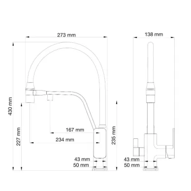 Смеситель для кухни Wonzon & Woghand WW-88458006-CR c подключением фильтра, хром