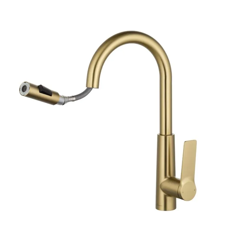 Смеситель для кухни Wonzon & Woghand WW-A20782-BG с выдвижным изливом, брашированное золото