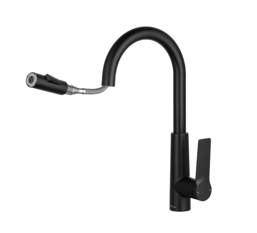 Смеситель для кухни Wonzon & Woghand WW-A20782-MB с выдвижным изливом, чёрный матовый