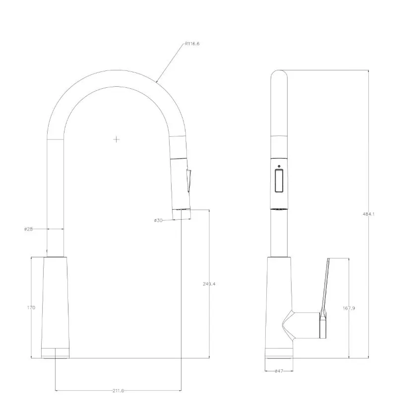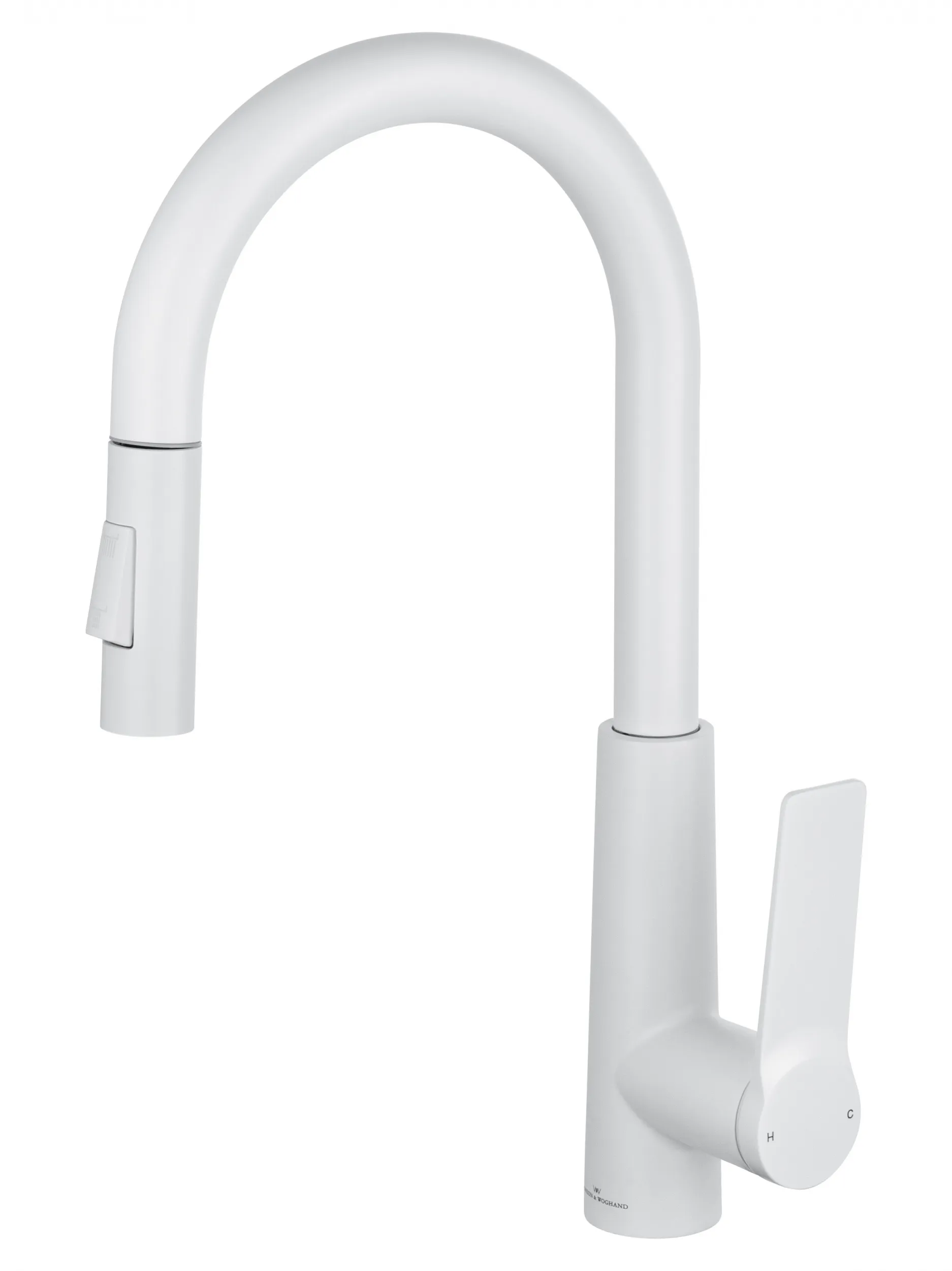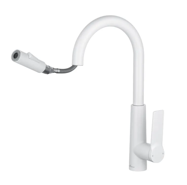 Смеситель для кухни Wonzon & Woghand WW-A20782-MW с выдвижным изливом, белый матовый