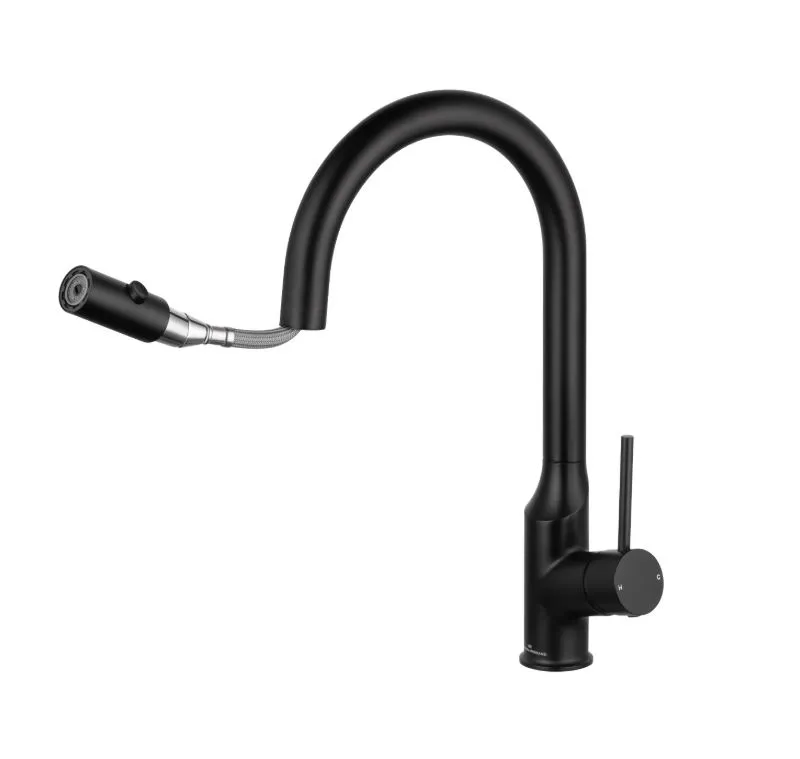 Смеситель для кухни Wonzon & Woghand WW-A21252-MB с выдвижным изливом, чёрный матовый