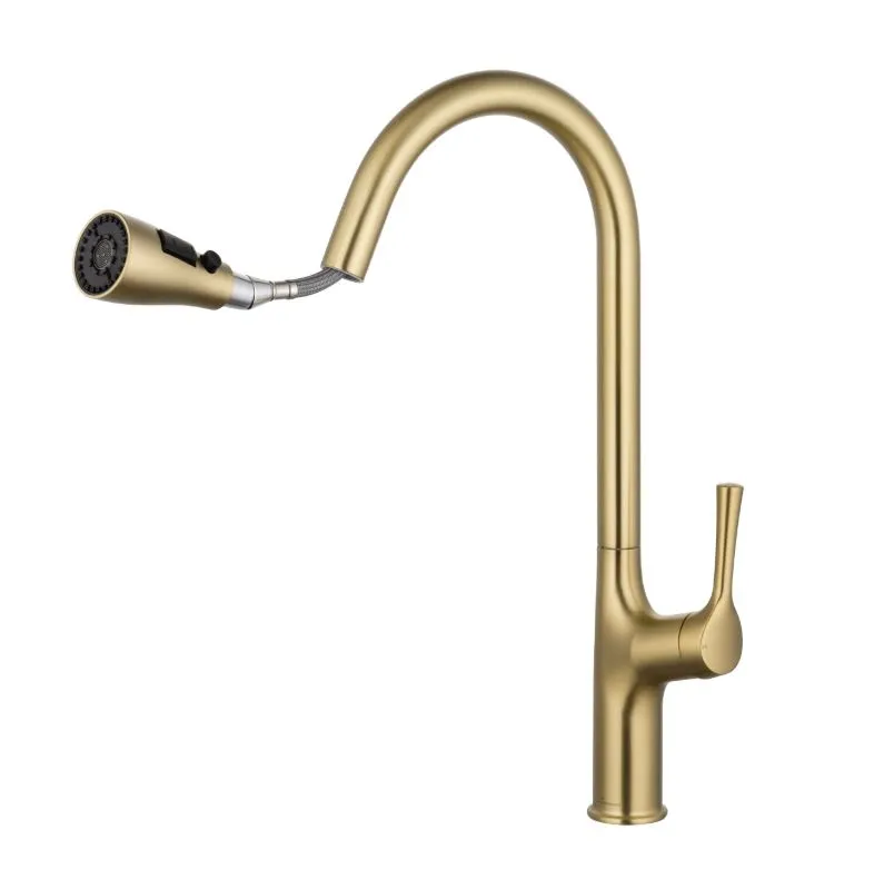 Смеситель для кухни Wonzon & Woghand WW-AE54123-BG с выдвижным изливом, брашированное золото