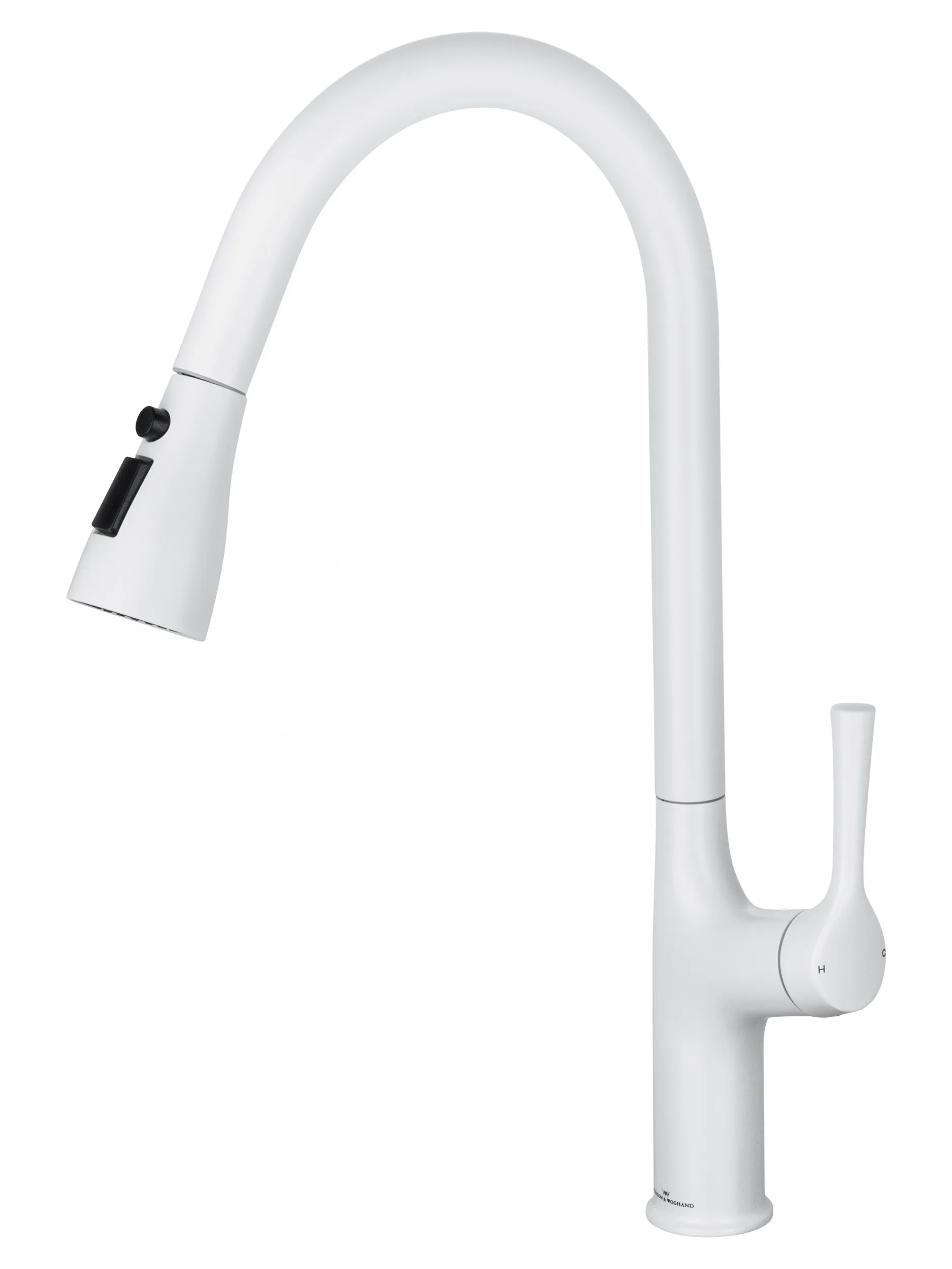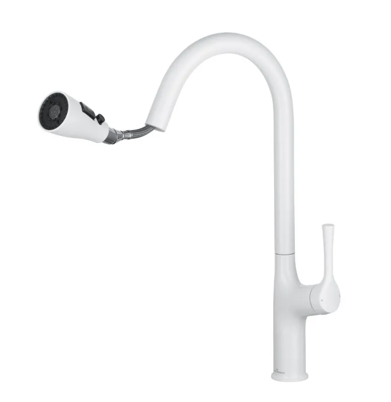 Смеситель для кухни Wonzon & Woghand WW-AE54123-MW с выдвижным изливом, белый матовый
