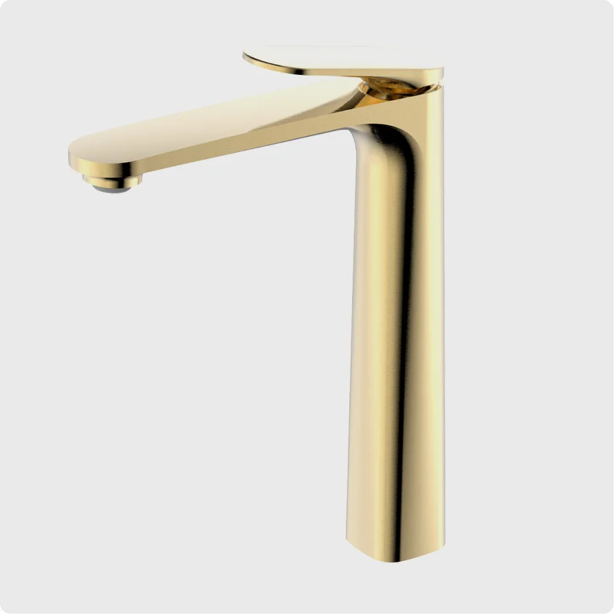 Смеситель для раковины высокий, - картридж Citec 26мм - подводка 1/2 длина 350мм, - аэратор Neoperl, - цвет шлифованное золото