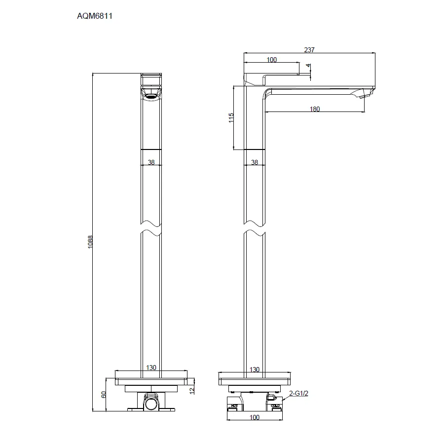 Смеситель для раковины AQUAme Savona AQM6811BG напольный, золото