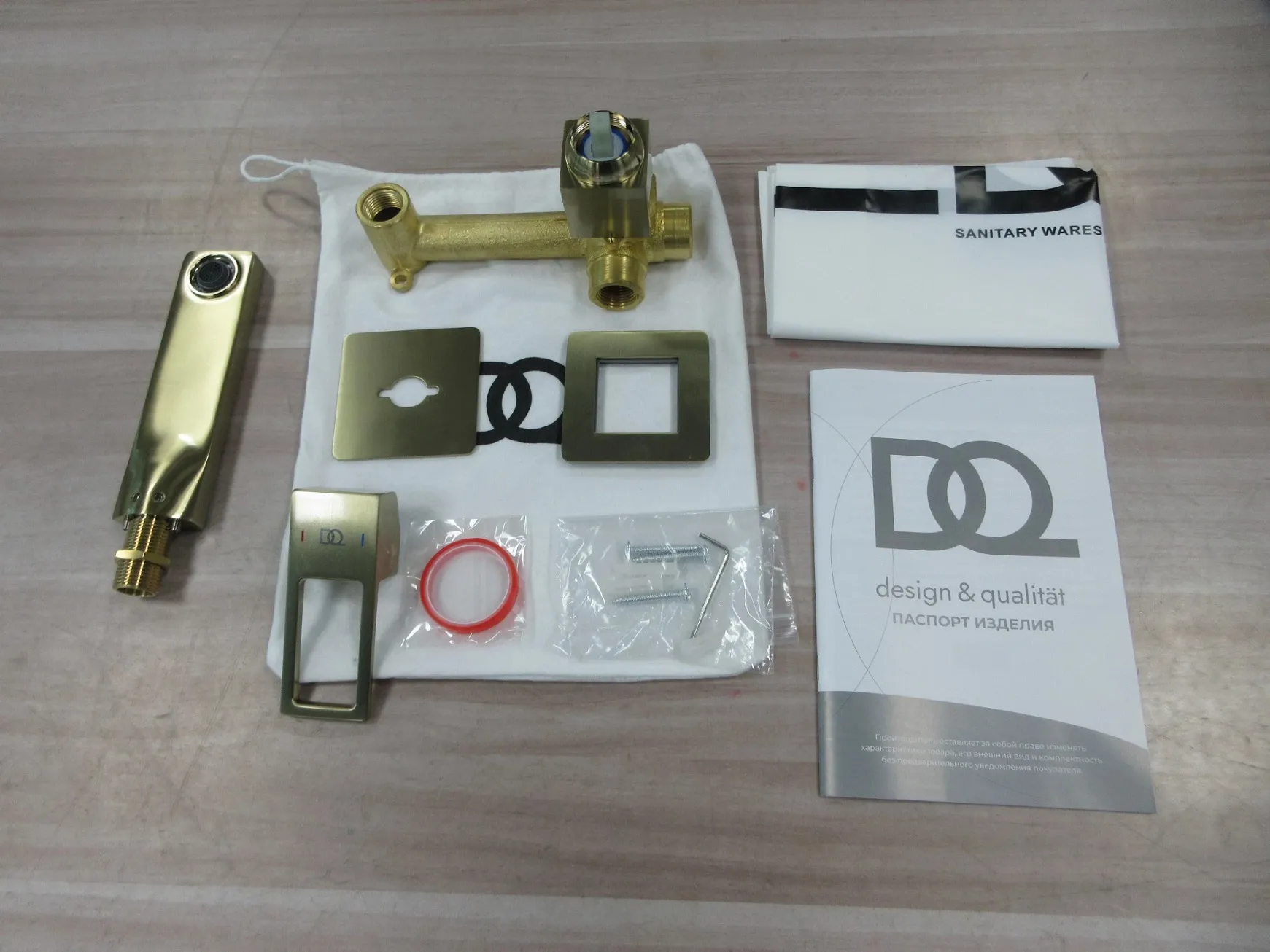- Смеситель для раковины DQ Dortmund DA1714407 встраиваемый настенный, матовое золото