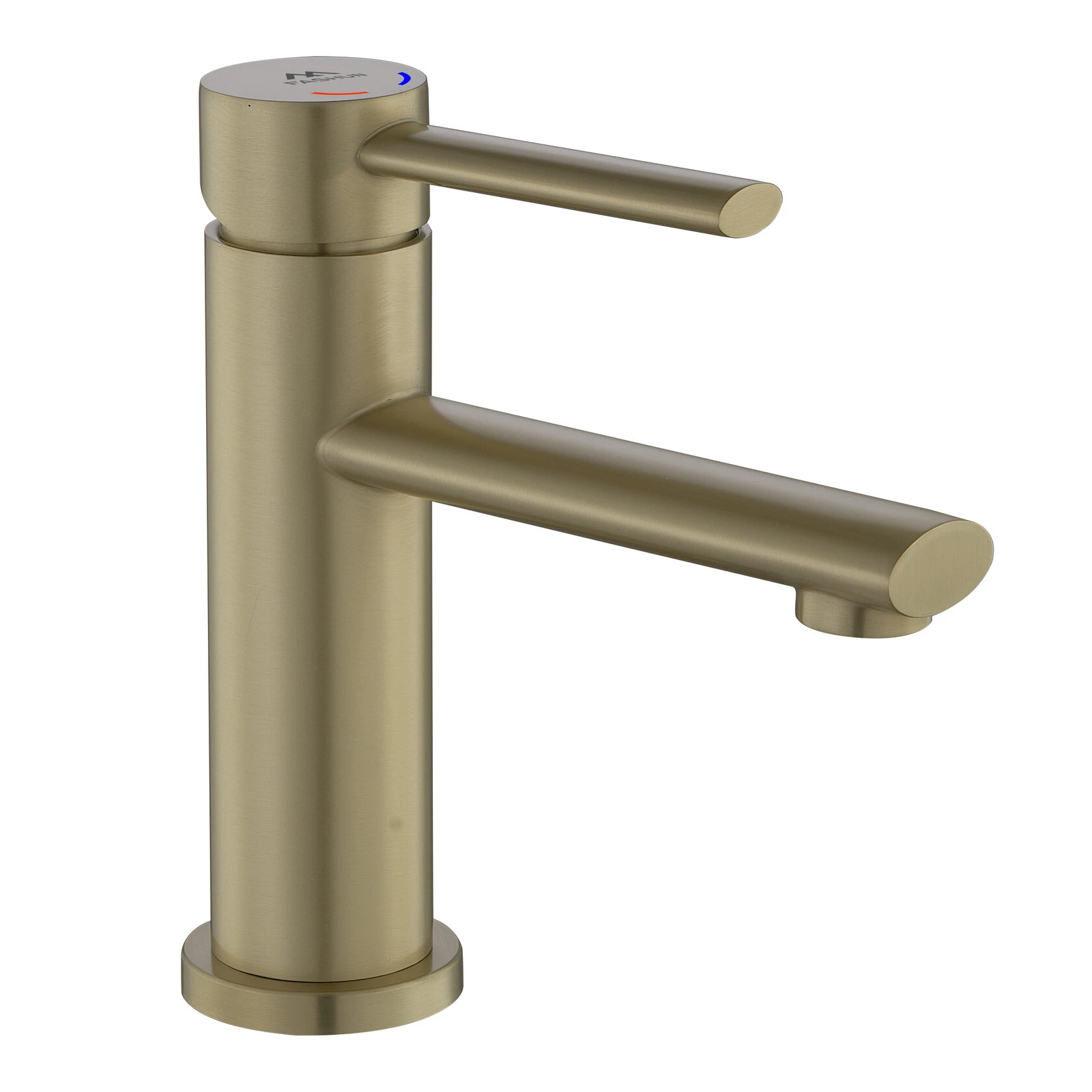 A51134-21 смеситель для умывальника, H=175 мм бронза, PVD покрытие сталь SUS304 картридж D=35 мм излив H=98 мм гибкая подводка: 450 мм в комплекте крепёж: гайка